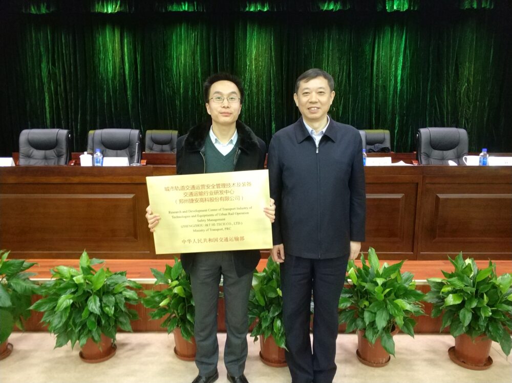 2017 年,捷安高科联合河南省交通科学技术研究院、郑州地铁、深圳地铁及兰州交通大学等 6 家单位共同申报,成功被国家交通运输部认证为 “城市轨道交通运营安全管理技术及装备交通运输行业研发中心”,成为国家级交通运输行业研发中心依托单位。中心明确了 “基于虚拟仿真的运营管理人员技能提升与评估技术及装备” 等四大研发内容,肩负着突破关键技术、研发核心装备、制定行业标准、搭建创新平台、推动成果转化及人才培养的五大核心任务。