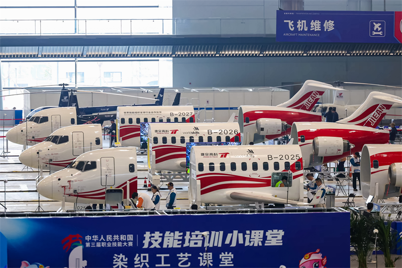 2025 年,捷安高科瞄准航空维修职业教育与国际赛事需求,在无成熟案例、无完整技术资料、无相关设计经验的前提下,成功研发 “飞机维修整机综合实训平台”,实现航空实训装备领域的关键突破,已成功应用于第三届全国技能大赛飞机维修赛项,创新地原本拆分的赛项模块整合集成于一整架仿真机身上操作。