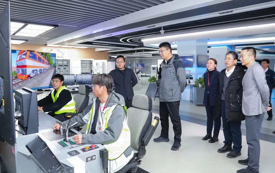 刘伟主任一行深入捷安高科虚拟仿真实训基地,系统观摩了轨道交通、应急安全、航空运输、航海舰船等领域的核心实训设备与解决方案,对捷安高科精准匹配职业技能培训需求、支撑职业技能鉴定、规模化培育高技能人才的能力予以充分肯定。在J6类机车车辆驾驶人员资格模拟驾驶考试系统前,领导详细观看了从叫号、认证核验、抽取考题、自动考试的全流程闭环考评体系;在L3类机车车辆驾驶人员资格模拟驾驶考试系统前,领导们对其对标L3轨道车驾驶资格考试标准和职业技能鉴定标准,既能满足L3级驾考实训,又能满足日常技能强化实训的功能予以高度认可;在J7-S1类机车车辆驾驶人员资格模拟驾驶考试系统前,领导们通过MR实时互动,沉浸式感受了前沿技术与驾驶培训的创新融合。
